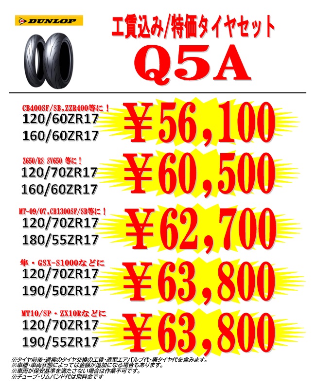 工賃込み・特価タイヤセット ダンロップ・Q5A