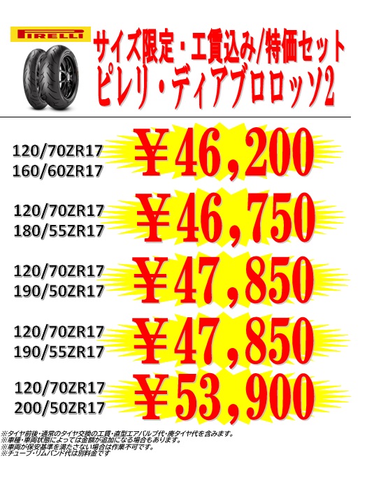 工賃込み・特価タイヤセット ピレリ・ディアブロロッソ2