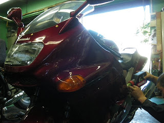 モトフット今日の出来事 10000マイル未満の極上zx-11 2009年11月23日 by Motofoot 本日は23年ぶりにZX-11に乗って山崎さんが 御来店してくださいました。 整備内容はフロントブレーキパッド左右交換、 前後ブレーキフルード、クラッチフルード交換、 エンジンオイル&オイルフィルターの交換でした。 ワコーズのグリス、コンパウンドでしっかりと 分解、清掃、給油、組み立てを行ないました。 ピストンもピカピカになりました! パッドはap racingのものを面取りして装着! 作業時間は合計1時間程でした。 タイヤ交換もお待ちしております!!