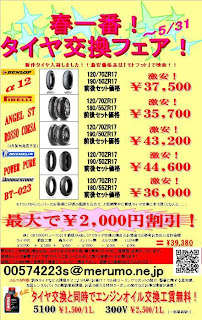 この画面をプリントアウトして店頭にお持ちいただくか、ブログでこの記事を読んだとスタッフにお伝えいただければ前後タイヤ交換の工賃が最大2000円引き!