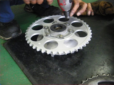 本日はk様がお持込になったリアスプロケットをリアタイヤを交換したついでに取替えさせていただきました!