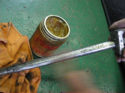 この写真はアクスルシャフトのグリスアップの風景です(^_^)