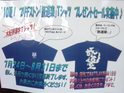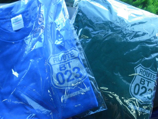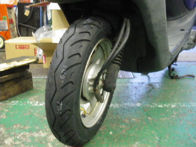 モトフット今日の出来事 JOG Z様 & ブリヂストンTシャツキャンペーン 2010年7月30日 by Motofoot 今当店でBT-023をご購入いただくと、ROUTE BT-023 Tシャツを差しあげます! 在庫に限りがございますのでお早めにどうぞ(^_^)!! こちらはJOGでフロントタイヤ交換に来ていただいたZ様の車両です。 タイヤの在庫もありますし、すぐに交換できます!フロントタイヤ交換は約10分で完了(゜o゜) 費用もバルブ交換がなければサイズにもよりますが、工賃等コミコミで4940円!メンバーの方は4440円! バルブを替えるとL型でプラス840円です(^^) ご近所のお客様も是非ご利用下さい!!