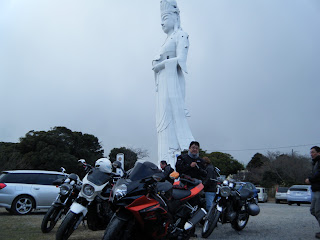 ツーリングレポート | モトフット今日の出来事 今月は千葉までツーリングに行ってきました。 2011年1月30日 by Motofoot 今回は寒い中5人の方に参加いただきました。 今月は年初めのツーリングということもあり、ちょっと豪華にフェリーにて千葉に上陸。 野島崎灯台のふもとにあるうどん屋さんで昼食。 粉雪が舞い散る中、君津にある「東京湾観音」を参拝。 帰りも豪華にアクアラインで帰ってきました。 走行距離230キロでした。 次回は2月27日。行き先募集中です。