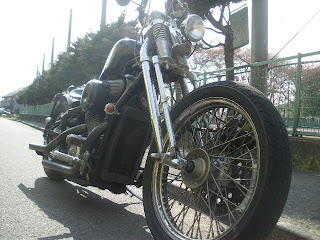 アメリカンバイクのタイヤ交換もサクサクこなしますよ~(^_^)!