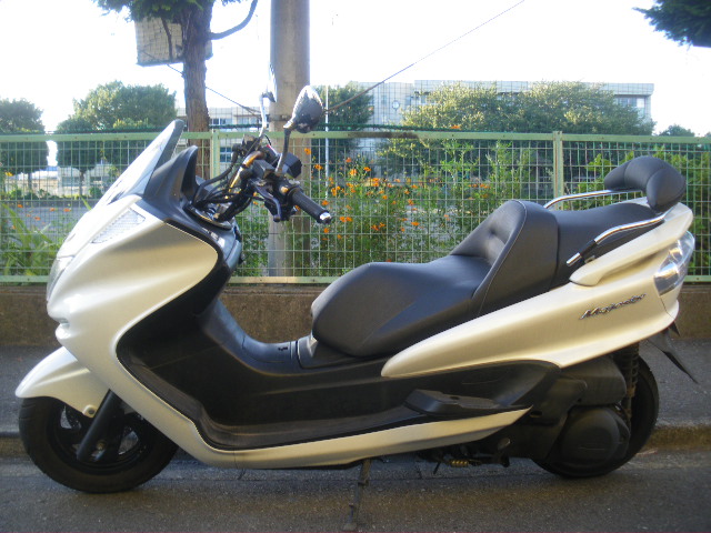マジェスティ250にお乗りの寺崎様、本日はリアタイヤ、リアブレーキパッドの交換でご来店でした。