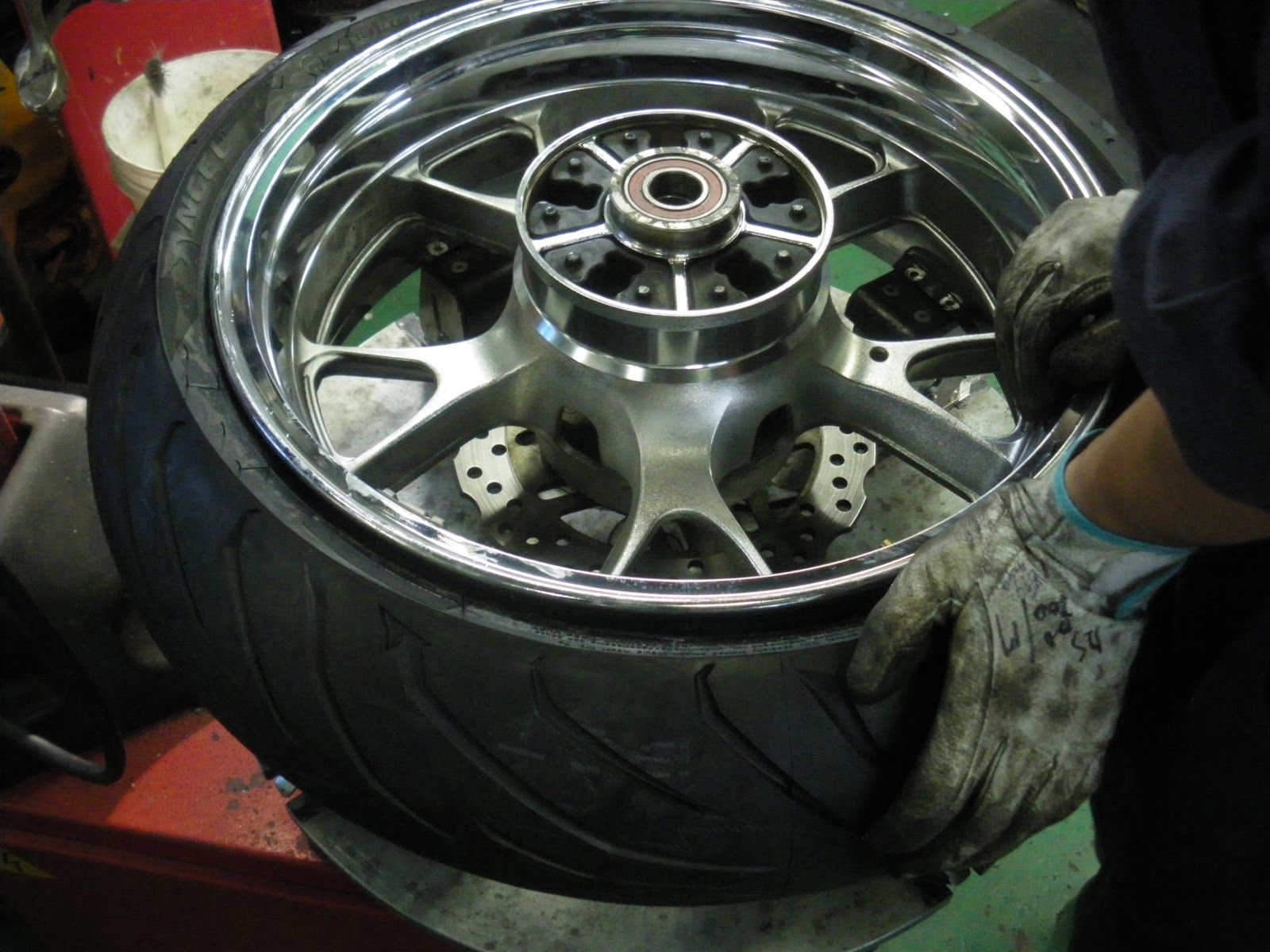 本日は前後タイヤ交換・ステムベアリング交換・ブレーキキャリパーO/H等