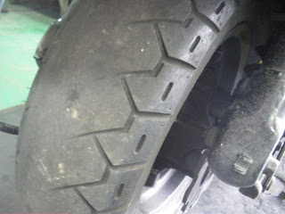 交換前のフロントタイヤです(゜o゜)