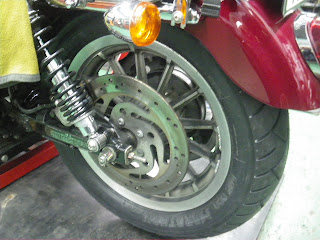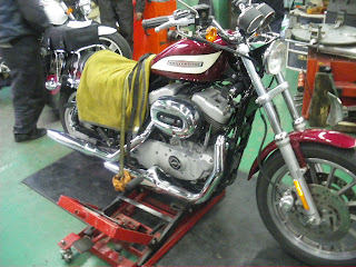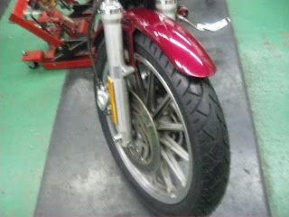 ハーレーXL1200Rの前後タイヤ交換中です!