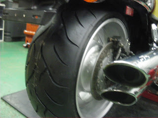 大柄なボディの為、ハーレー等と同じようにジャッキアップしてタイヤ交換をします!