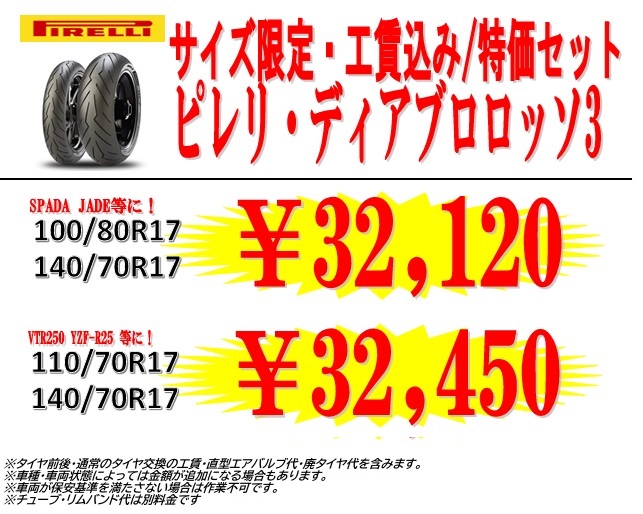 サイズ限定・工賃込み/特価タイヤセット ピレリ・ディアブロロッソ3 Hレンジ