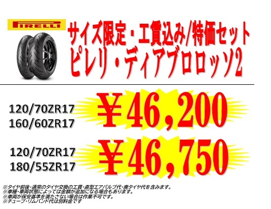 工賃込み・特価タイヤセット ピレリ・ディアブロロッソ2