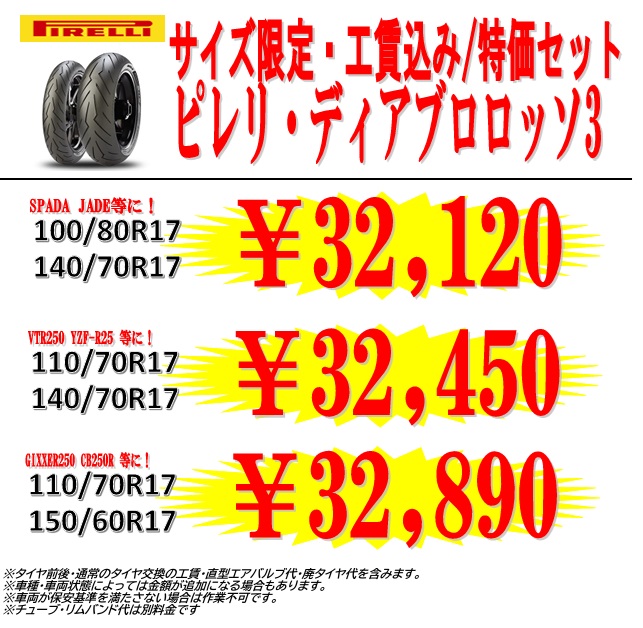 サイズ限定・工賃込み/特価タイヤセット ピレリ・ディアブロロッソ3 Hレンジ
