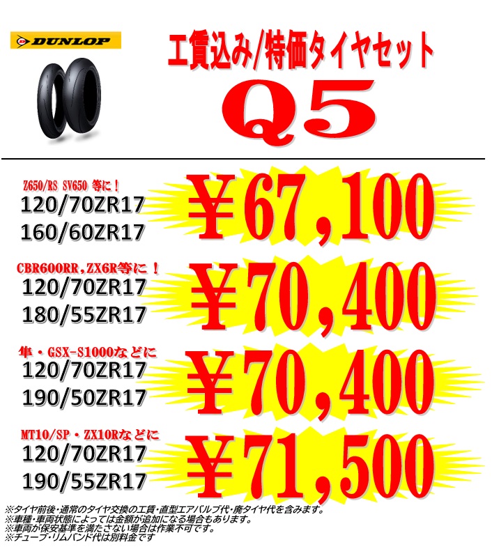 工賃込み・特価タイヤセット ダンロップ・Q5S